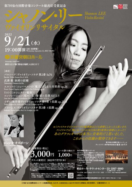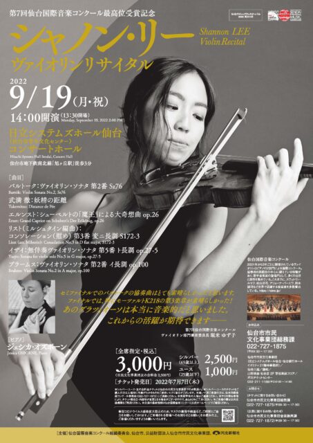 (シャノン・リー)第7回仙台国際音楽コンクールヴァイオリン部門最高位受賞、シャノン・リーによるリサイタル。