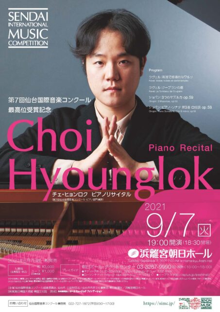 (チェ・ヒョンロク東京公演)第7回仙台国際音楽コンクールピアノ部門優勝、チェ・ヒョンロクによるリサイタル。